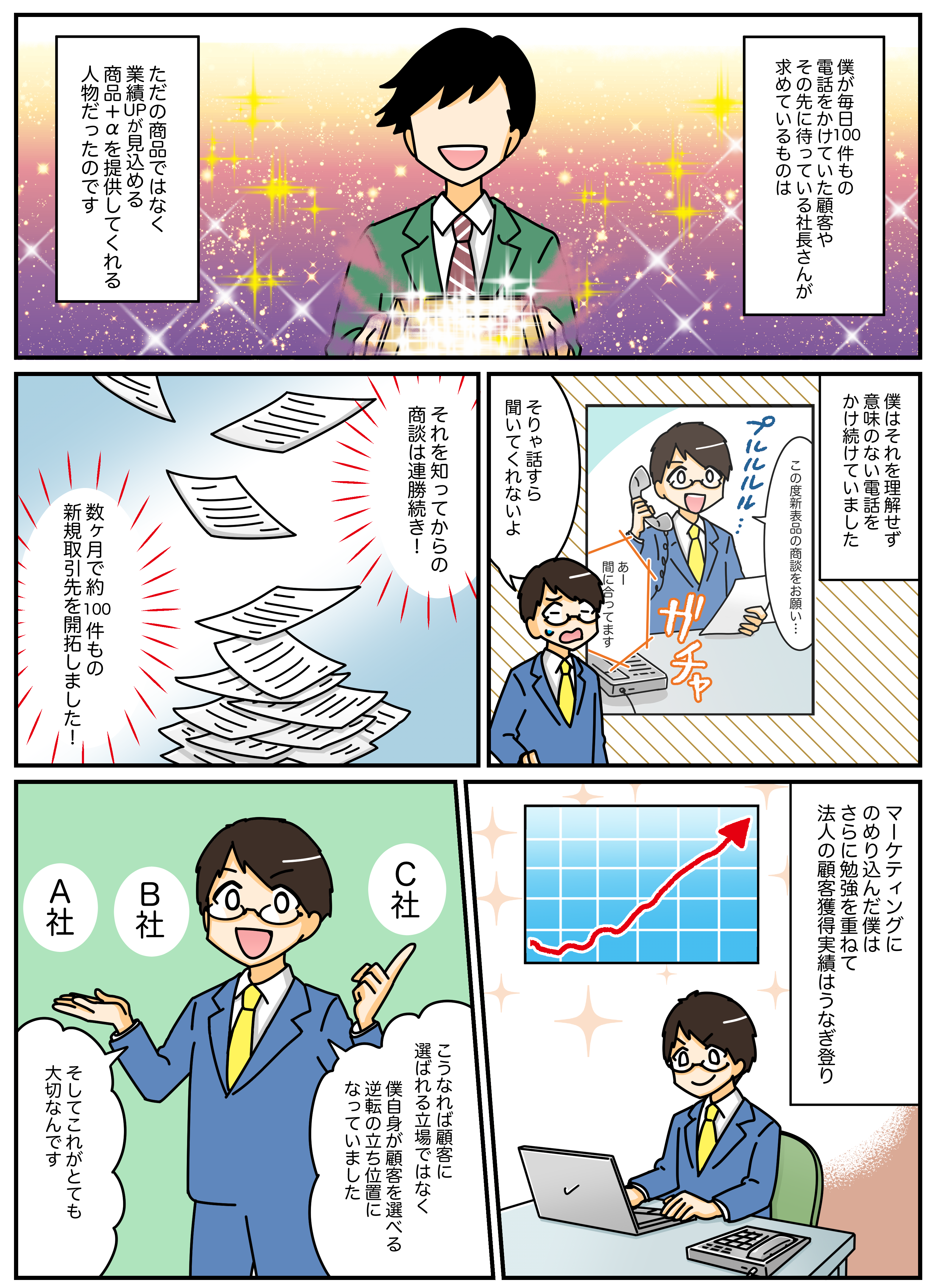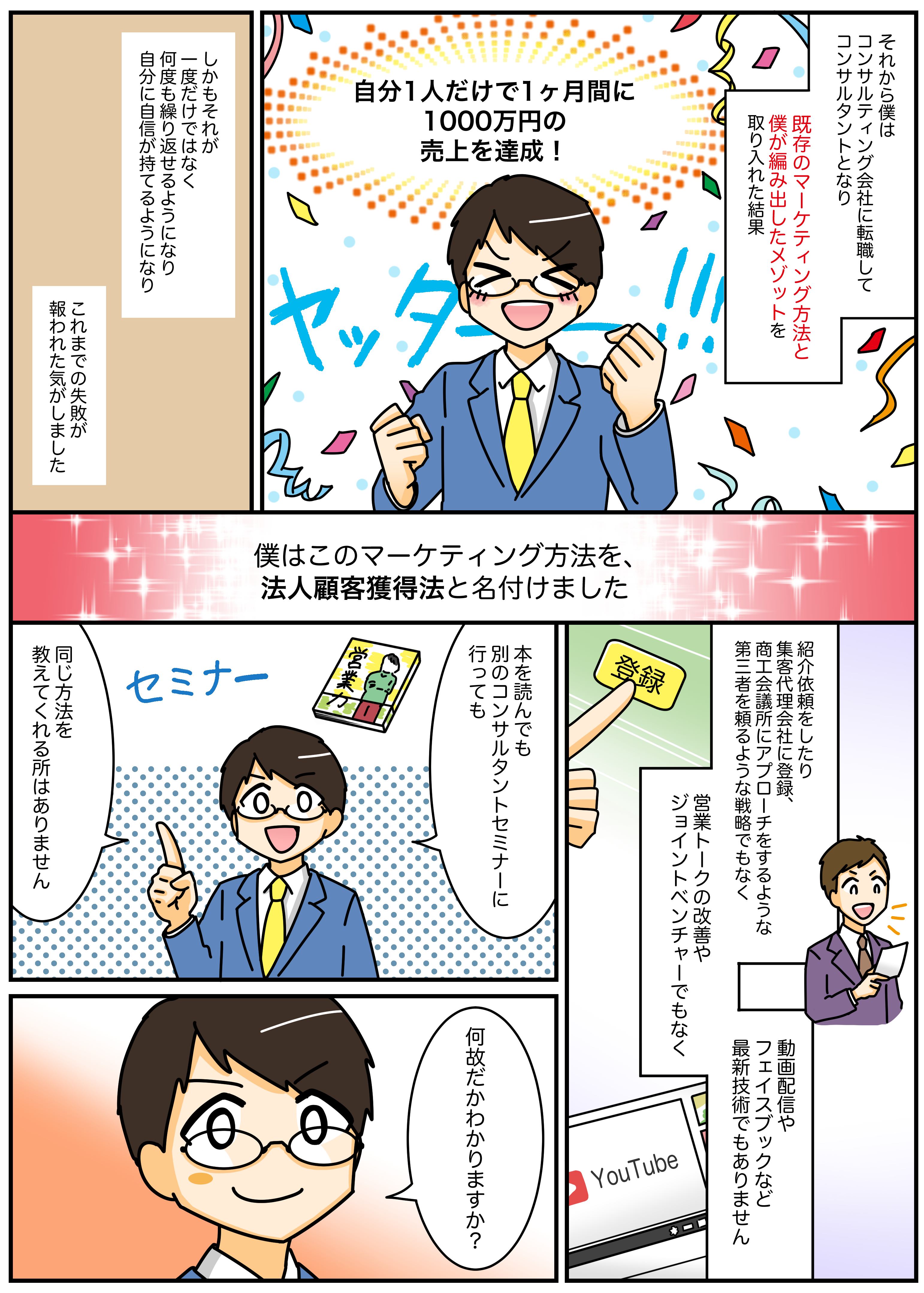 この体験をした後に、さらにマーケティングを深く学んでからは、もっと法人の顧客獲得実績は加速しました。